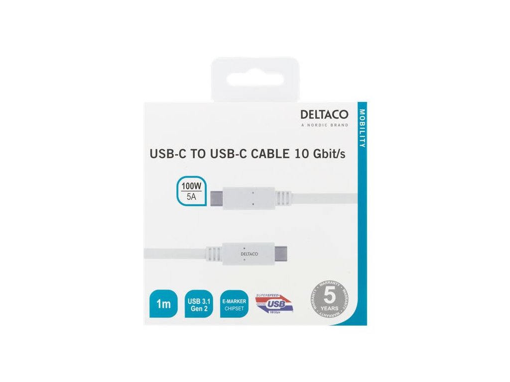 DELTACO USBC-1407M, Kábel USB-C/USB-C, 100W, 1m