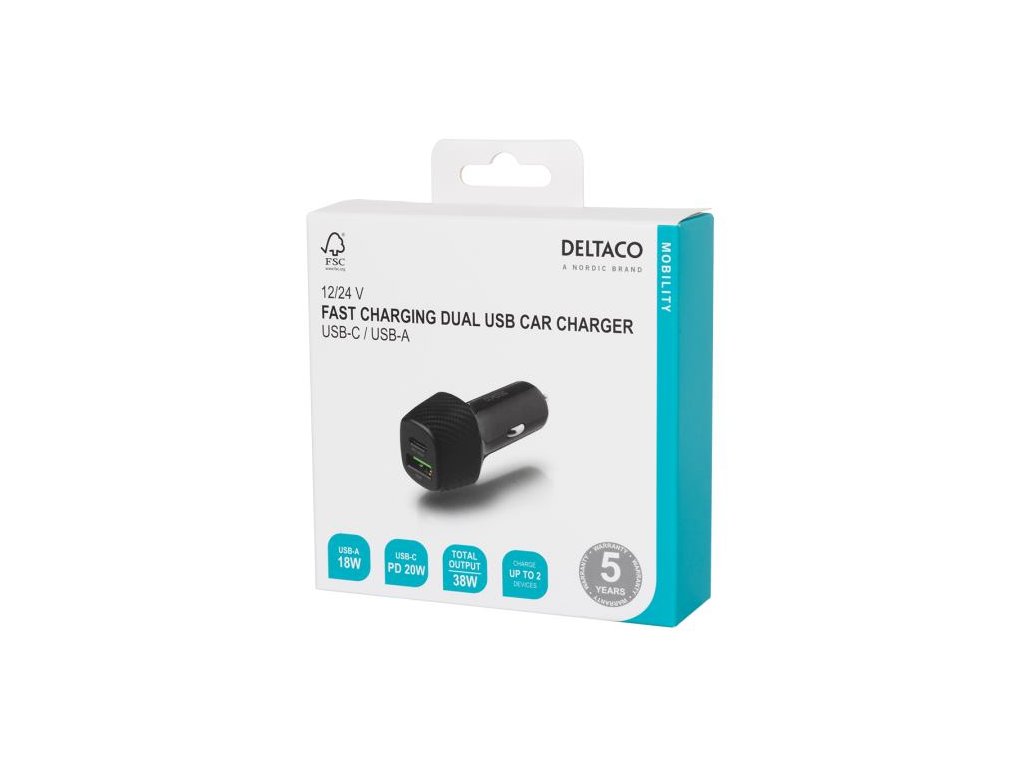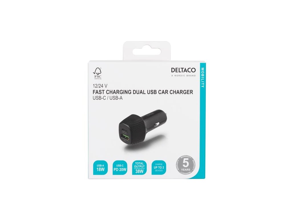 DELTACO USBC-CAR120, Autonabíjačka 1x USB-C/USB-A