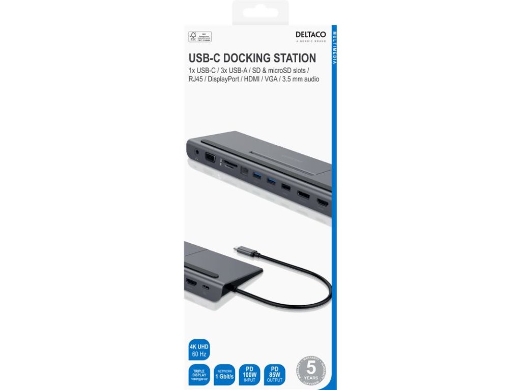 DELTACO USBC-DOCK2, Dokovacia stanica USB-C 8v1