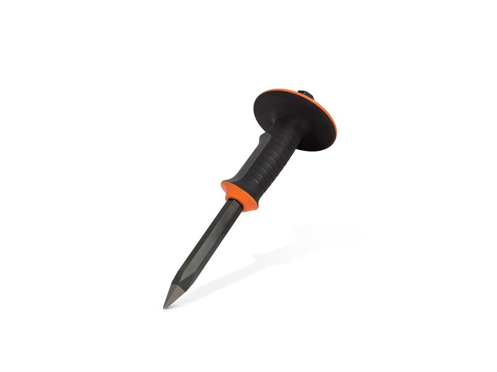 Toto špicaté dláto slúži na ručné vyrezenie dier. Vďaka kvalitnej oceľovej zliatine je náradie silné a odolné. Ergonomické a stabilné uchopenie zabezpečí pogumovaná rukoväť. Pre bezpečnosť má dláto ochranný štít , ktorý zabríni poraneniu ruky.- Oceľová zliatina