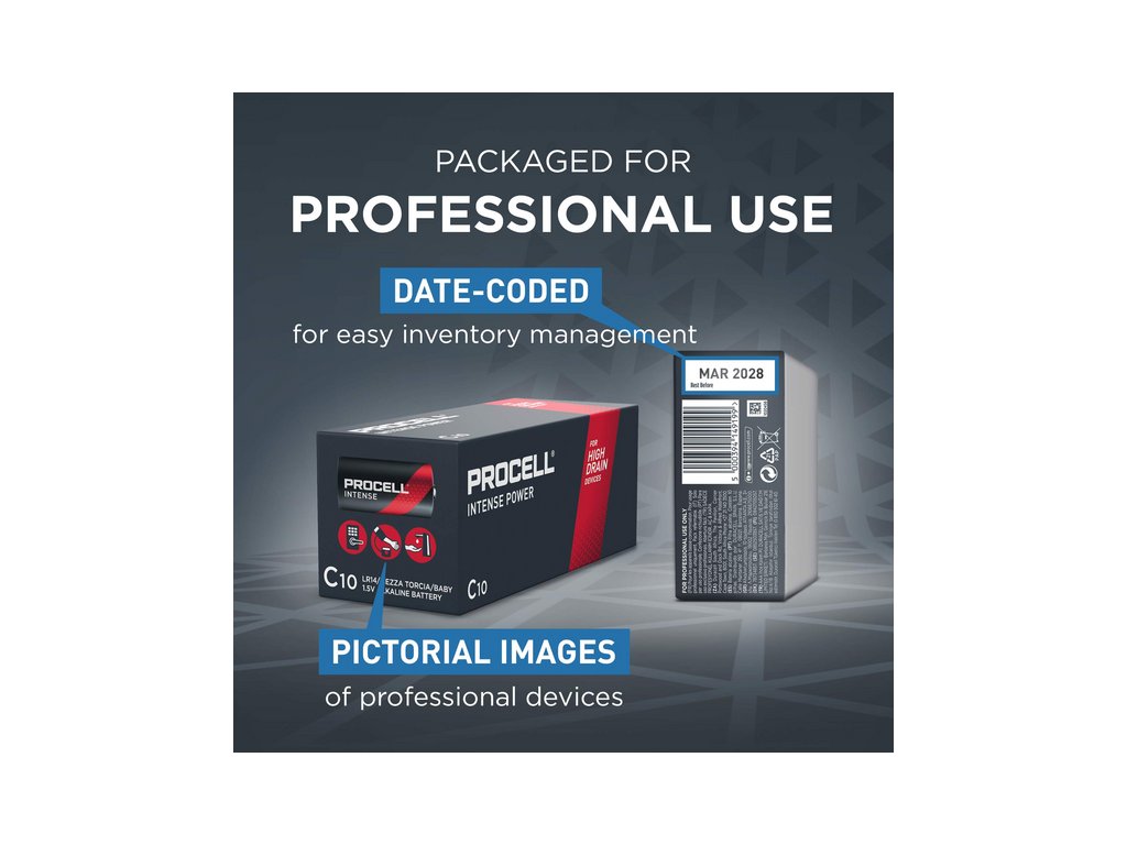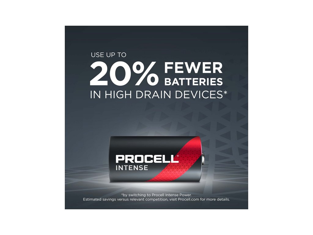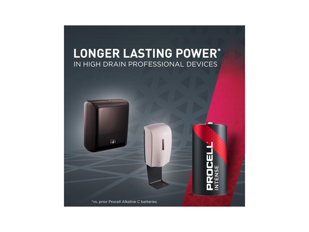 Priemyselné batérie Procell Alkaline Intense C sú špeciálne navrhnuté tak, aby mali dlhšiu výdrž (v porovnaní s predchádzajúcimi alkalickými batériami Procell C) v profesionálnych zariadeniach s vysokým odberom energie, ktoré vyžadujú veľké množstvo energie alebo energetické špičky, ako je napríklad dávkovač mydla.