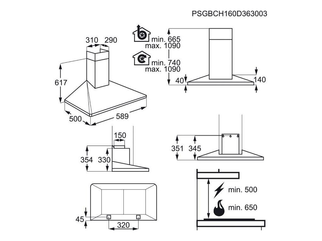 Typ inštalácie: Komínový, šírka 60 cm