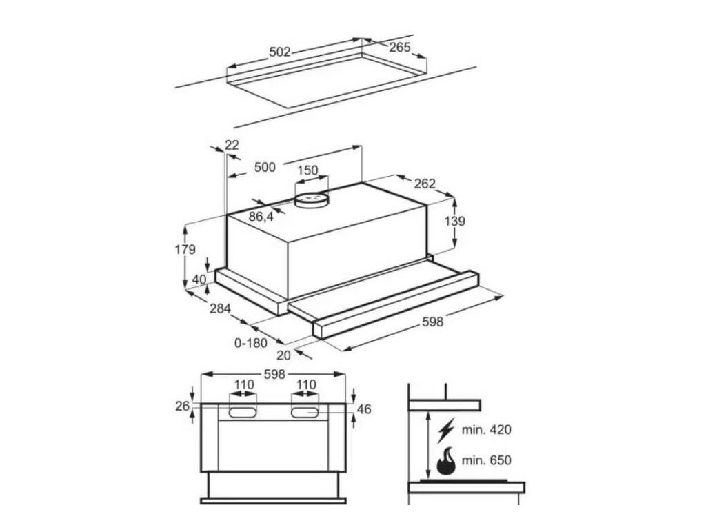 Typ inštalácie: Teleskopický, šírka 60 cm