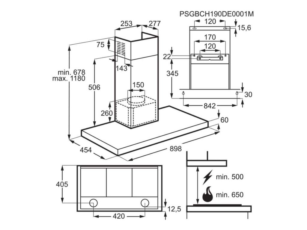 Typ inštalácie: Komínový, šírka 90 cm