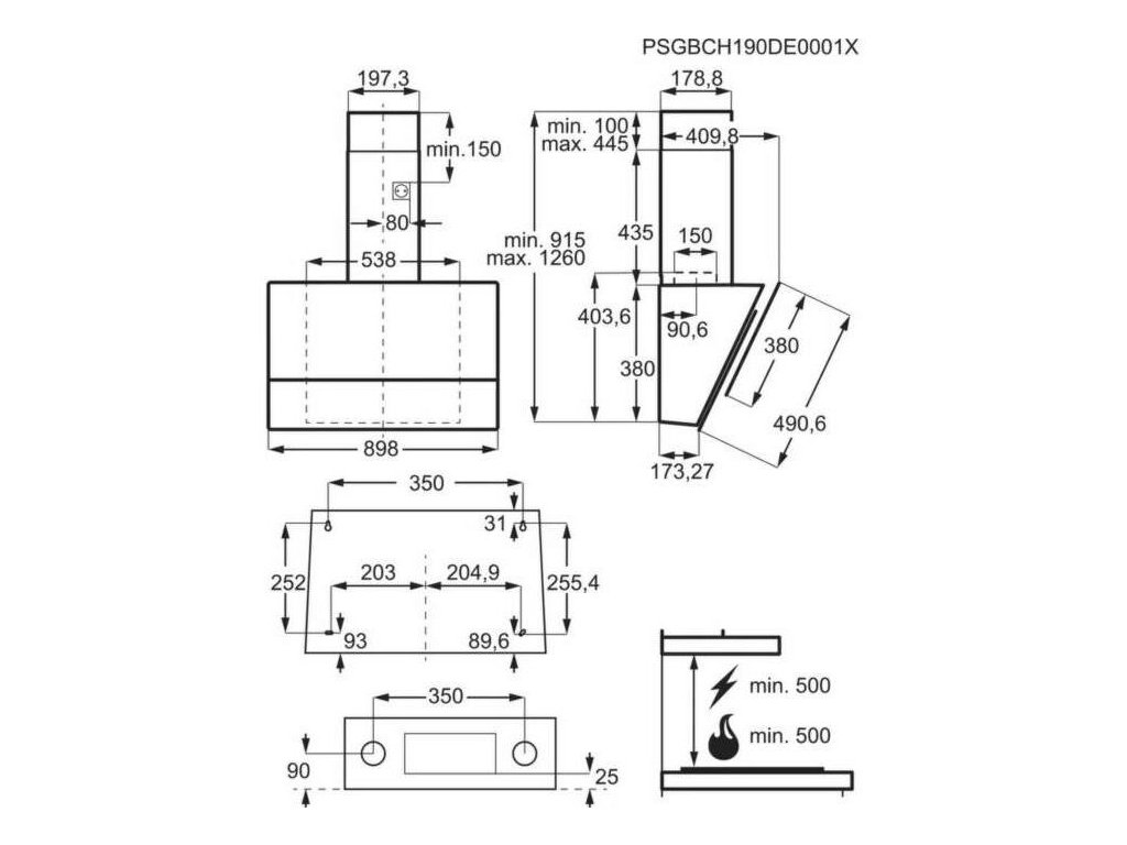 Typ inštalácie: Komínový, šírka 90 cm