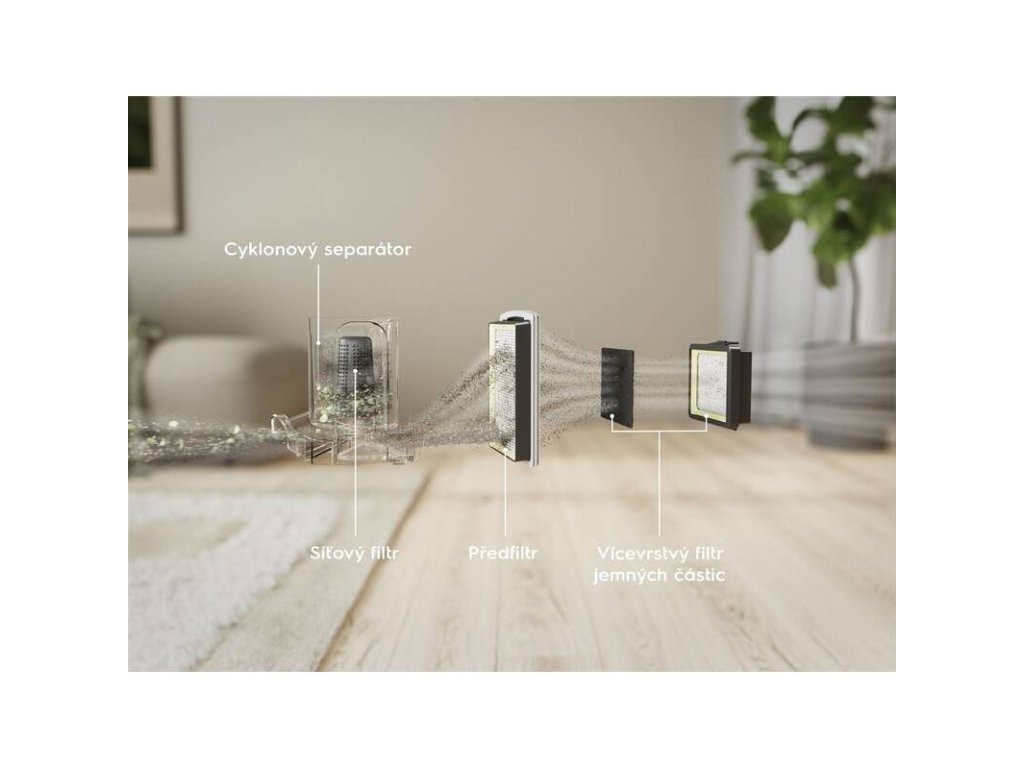 Čistý vzduch a udržateľnosť: O čistotu vzduchu vo vašej domácnosti sa stará umývateľný HEPA filter, ktorý zachytí až 99,95 % nečistôt. Navyše, vysávač je vyrobený z 50 % recyklovaných plastov, čo z neho robí ekologickejšiu voľbu.