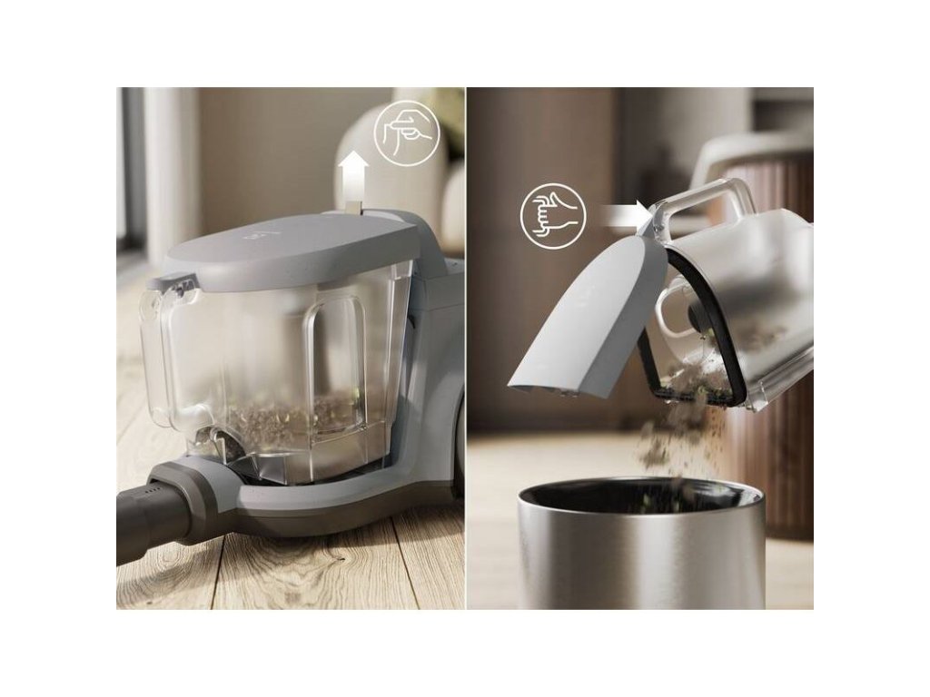 Hygienické a jednoduché vyprázdňovanie: Zabudnite na neporiadok a kontakt s prachom. Nádobu na prach vyprázdnite jednoducho a čisto jednou rukou vďaka premyslenému dizajnu.