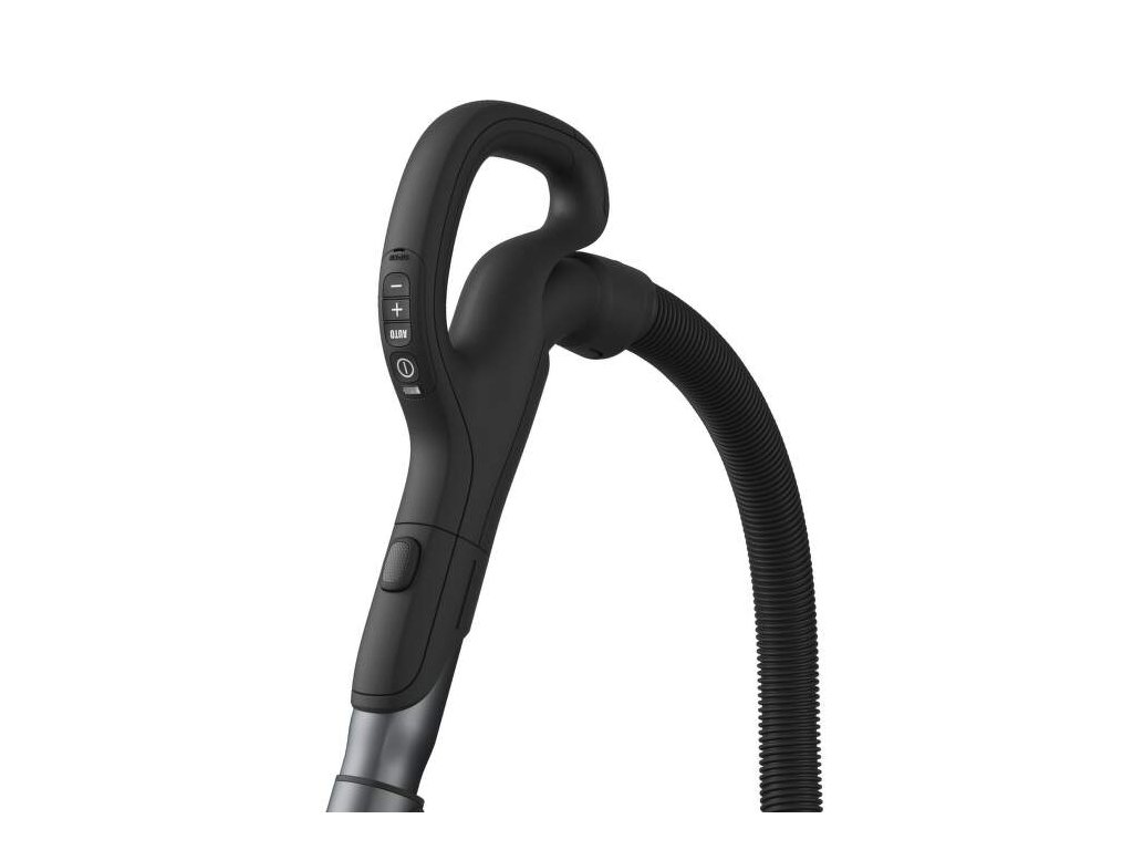 Regulácia výkonu na rukoväti: Reguluje sací výkon dotykovým tlačidlom na rukoväti.