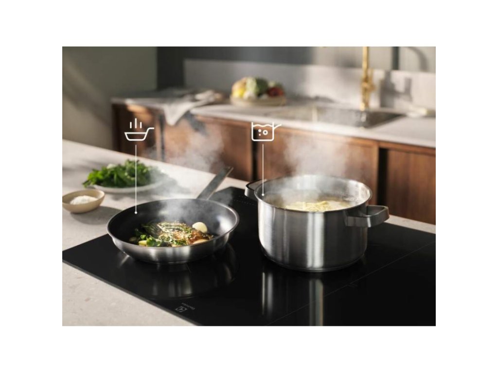 Ovládacie funkcie: 3 krokové využitie zvyškového tepla, akustický signál, rýchle ohriatie - funkcia Booster, detský zámok, Eco časovač, flexibilný Power Management, Heat memory, Hob2hood, Individual zone timers, zámok tlačítok, ľavý Bridge, minútka, pauza, SenseCook Boil, SenseCook Fry, vypnutie zvuku