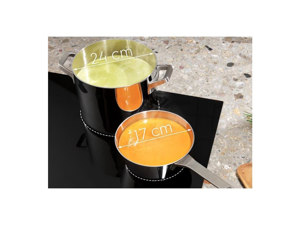 Ovládacie funkcie: Hob2hood, Keep warm, zámok tlačítok, rozmrazovanie, 3 krokové využitie zvyškového tepla, akustický signál, rýchle ohriatie - funkcia Booster, detský zámok, Double Bridge, Eco časovač, flexibilný Power Management, minútka, pauza, detekcia hrnca, SenseCook Boil, SenseCook Fry, vypnutie zvuku, ukazovateľ času