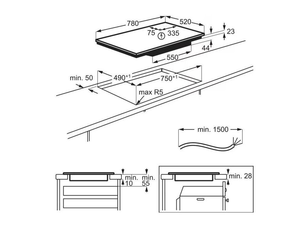 Šírka výrezu (mm): 750