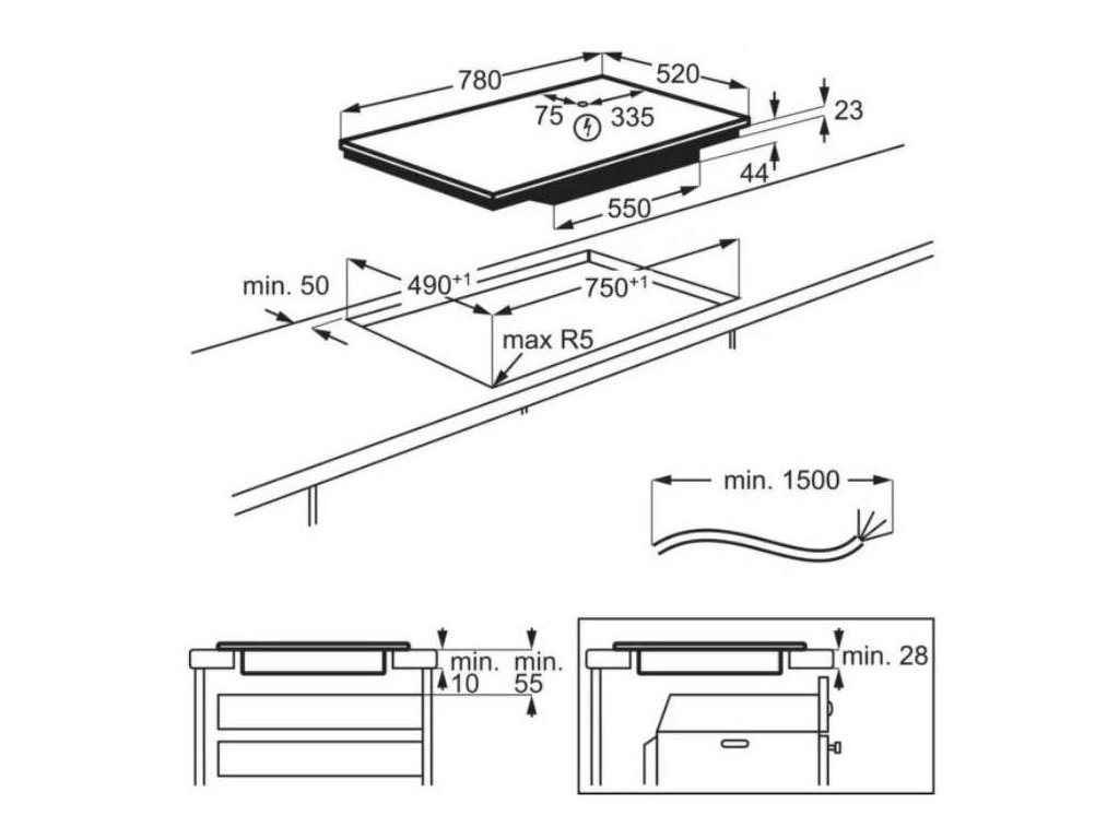 Rozmery pre zabudovanie VxŠxH (mm): 44x750x490