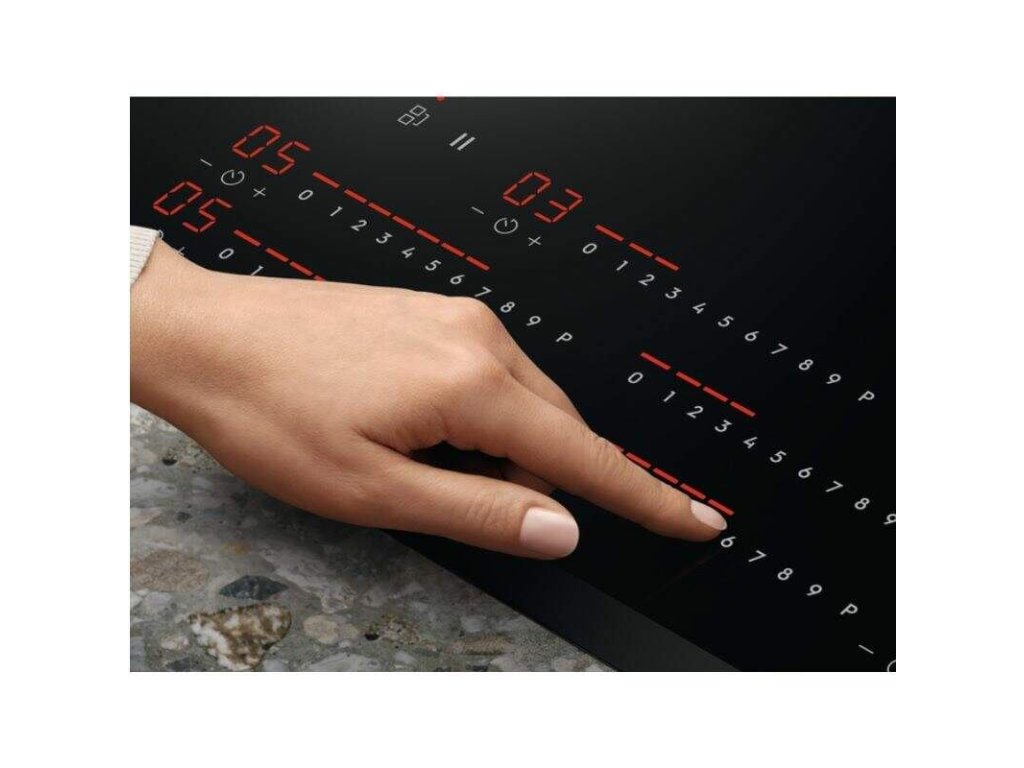 Ovládacie funkcie: 3 krokové využitie zvyškového tepla, akustický signál, rýchle ohriatie - funkcia Booster, detský zámok, Double Bridge, Eco časovač, flexibilný Power Management, Heat memory, Hob2hood, Individual zone timers, zámok tlačítok, minútka, pauza, detekcia hrnca, vypnutie zvuku