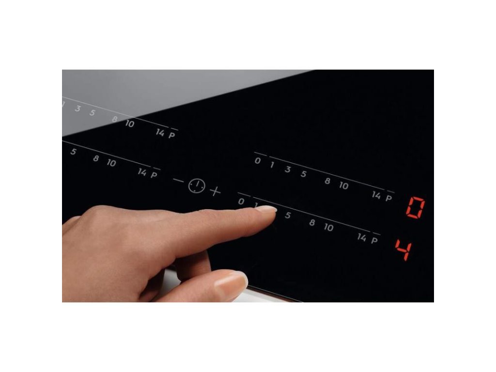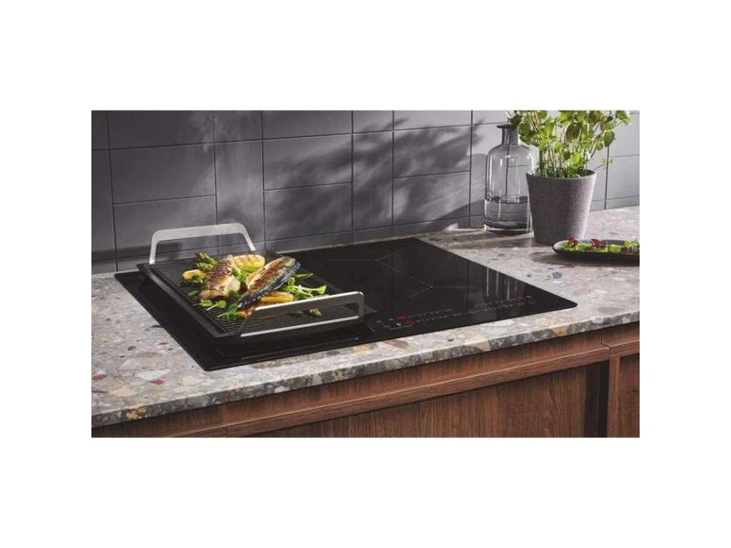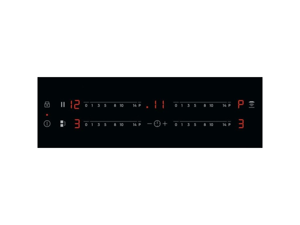 Ovládacie funkcie: 3 krokové využitie zvyškového tepla, akustický signál, automatické zahratie, rýchle ohriatie - funkcia Booster, detský zámok, časovač, Eco časovač, Hob2hood, zámok tlačítok, ľavý Bridge, minútka, pauza, vypnutie zvuku, ukazovateľ času