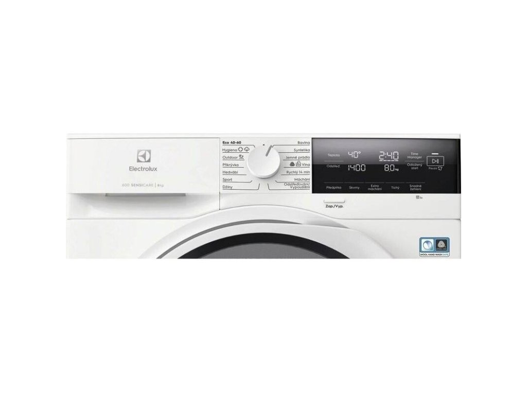 Funkcie: zap./vyp., TEMP SELECTION, nastavenie rýchlosti odstreďovania, predpranie, STAIN, extra plákanie, SILENT, Easy Iron, DELAY, TIME MANAGER, štart/pauza