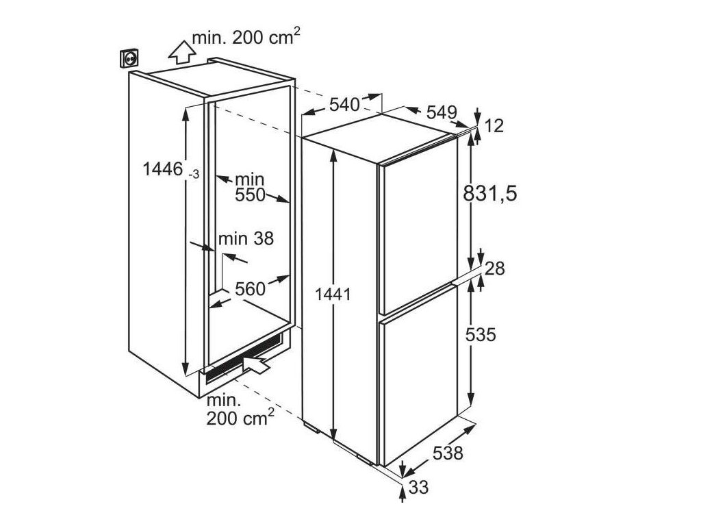 Rozmery pre zabudovanie VxŠxH (mm): 1446x560x550