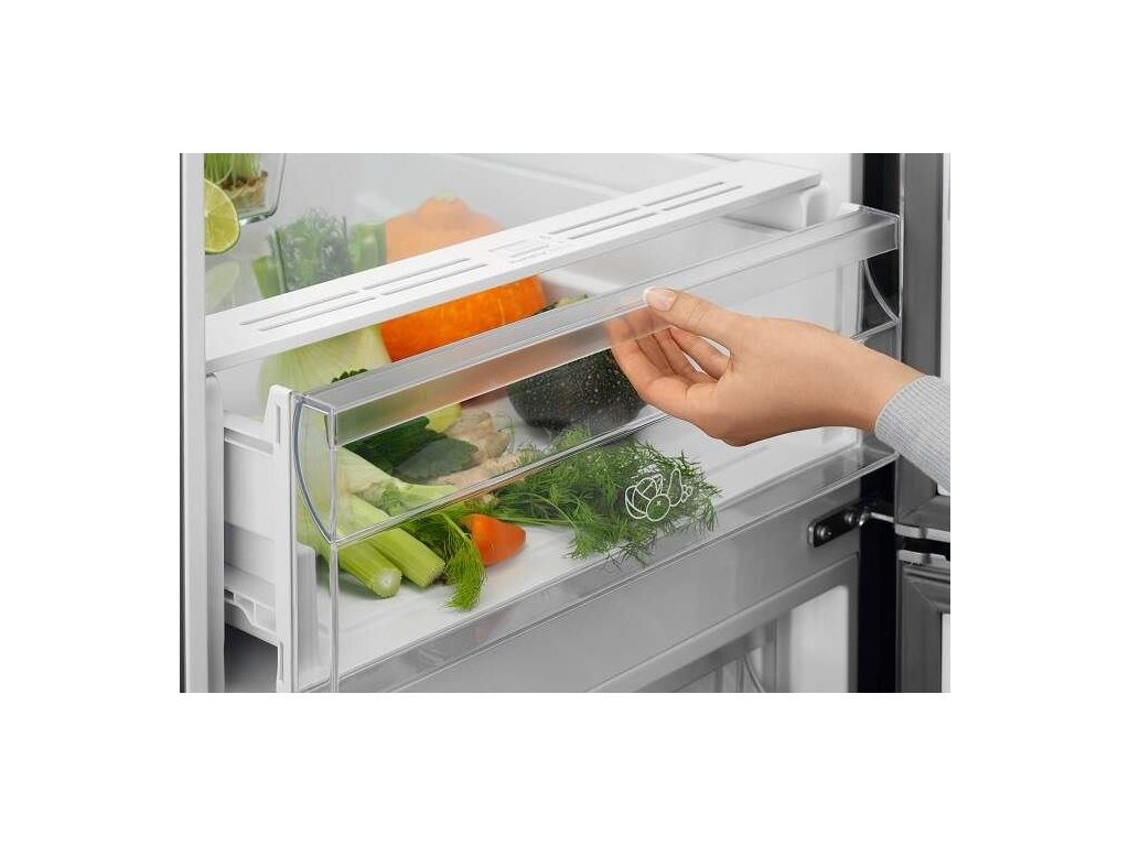 Zásuvky mrazničky: 2 plnej šírky + 1 polovičnej hĺbky, priehľadné plastové