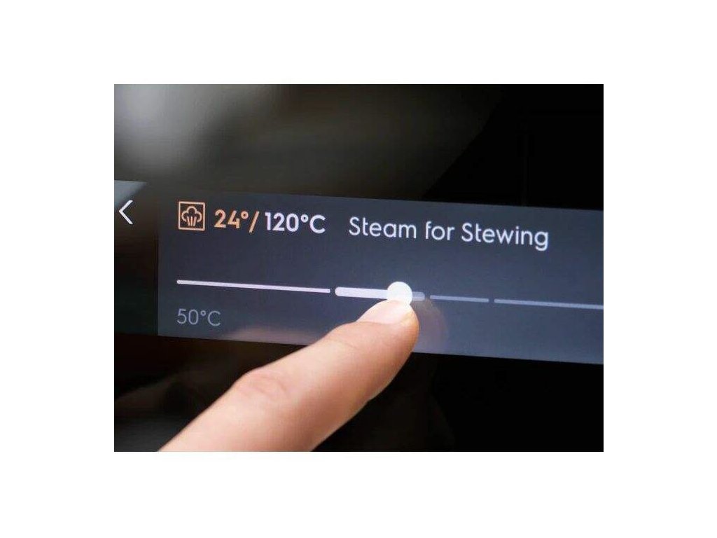 Elektronické funkcie: akustický signál, ovládanie aplikácií, konektivita, čas varenia, čas varenia s odhadovaným koncom, vypúšťanie pary, demo program s kódovaním, odstraňovanie vodného kameňa, nastavenie jasu displeja, Display Full colour TFT touch 175x35mm, automatické vypnutie, nastaviteľná hlasitosť zvukového upozornenia, Check Result/Time extension (Finish Assist by remaining 10% duration), Child lock (in off mode), minútka pre čistenie, Clock style in standby (2 versions), 260 predpripravených varných programov Assist (senzor hmotnosti/pokrmu/para/SousVide), 30 jazykov, ukazovateľ skutočnej teploty (°C) , indikácia zvyškového tepla (°C), využitie zvyškového tepla, preplachovanie, servisné informácie, nastavenie spustenia, čistenie parou (2 cykly: Steam Cleaning, Steam Cleaning Plus), vypnutie času dňa v stave vypnutia, odporučaná teplota, denný čas, nastavenie tvrdosti vody, udržiavanie teploty 65°C rozšírené o pečenie pri nízkej teplote a nastavenie senzoru pokrmu, tóny tlačidiel a tóny alarmu a chýb - aktivácia / deaktivácia (okrem ZAP/VYP), jazyky / textový displej, hlavný vypínač, denná pamäť 3 dni späť, minútka, zapnutie/vypnutie osvetlenia rúry (menu + samostatné tlačidlo), Over the air update (OTA), senzor pokrmu s odhadom času, Info button & short function description, Drying function after cavity steaming, elektronická regulácia teploty, rýchle predohriatie s výberom možností, senzor pokrmu, automatické vypnutie senzoru pokrmu, ukazovateľ teploty senzoru pokrmu