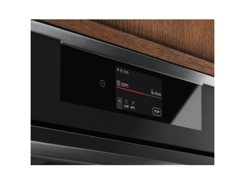 konektivita, čas varenia, Clock automatic adjustment, Clock style in standby (2 versions: digital, 7 segments), Child lock (in off mode), minútka pre čistenie, nastaviteľná hlasitosť zvukového upozornenia, Check Result (Finish Assist by remaining 10% duration) ('Use residual heat' screen + beep), 14 Multi Step Cooking Functions, 25 Languages / Textdisplay, ovládanie aplikácií, automatické vypnutie (len rúry), 3 Pyro cycles (quick. normal. intense), akustický signál, Display Full colour TFT touch 4.3 inches 9 x 5, 75 Variety of pre-set cooking programmes 'Assist', OTA programming (excluding power board), Oven light on/off selectable (2 ways: menu, direct access on home screen), Preheating (none, eco, fast), ukazovateľ skutočnej teploty (°C) , indikácia zvyškového tepla (°C), Residual heat usage (only with duration), servisné informácie, Short cut keys in standby screen, odporučaná teplota, denný čas, čas varenia s odhadovaným koncom, stopky, denná pamäť 3 dni späť, minútka, tóny tlačidiel a tóny alarmu a chýb - aktivácia / deaktivácia (okrem ZAP/VYP), hlavný vypínač, ukazovateľ teploty senzoru pokrmu, senzor pokrmu s odhadom času, senzor pokrmu, automatické vypnutie senzoru pokrmu, Electronical door switch, rýchle predohriatie s výberom možností, elektronická regulácia teploty, elektronický zámok dvier, demo program s kódovaním, nastavenie jasu displeja