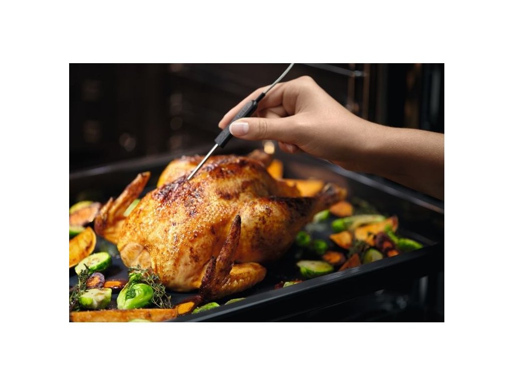 Elektronické funkcie: 170 variety of pre-set cooking programmes "Assist" (weight/food sensor), 30 jazykov, akustický signál, App control, Automatic safety switch off only oven, nastaviteľná hlasitosť zvukového upozornenia, Check Result/Time extension (Finish Assist by remaining 10% duration), Child lock (in off mode), minútka pre čistenie, Clock style in standby (2 versions), Connectivity, Cooking with Duration, Cooking with End Time and Duration, Demo mode with code, Display Brightness adjustable (ON status), Display Full colour TFT touch 175x35mm, elektronická regulácia teploty, elektronický zámok dvier, rýchle predohriatie s výberom možností, senzor pokrmu, automatické vypnutie senzoru pokrmu, ukazovateľ teploty senzoru pokrmu, Food sensor time estimation, Info button & short function description, udržiavanie teploty 65°C rozšírené o pečenie pri nízkej teplote a nastavenie senzoru pokrmu, tóny tlačidiel a tóny alarmu a chýb - aktivácia / deaktivácia (okrem ZAP/VYP), jazyky / textový displej, hlavný vypínač, Memory day time 3 days, minútka, Oven light on/off selectable (menu + direct access button), Over the air update (OTA), Pyrolytic cleaning (3 cycles: quick. normal. intense), Real temperature indication (°C), indikácia zvyškového tepla (°C), využitie zvyškového tepla, Service info, nastavenie spustenia, vypnutie času dňa v stave vypnutia, odporučaná teplota, denný čas