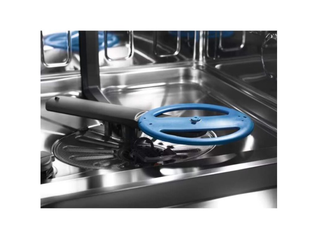 Vlastnosti horného koša: 6 úchytov na poháre na víno, 2 sklopné držiaky, 2 sklopné drôtené úchyty na poháre, 2 mäkké gumové špičky , sklopné držiaky na poháre, Stainless steel handle Electrolux