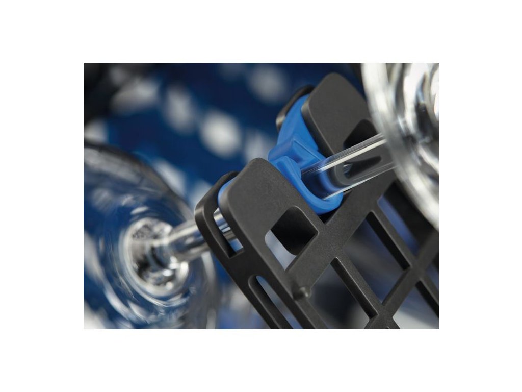 Horný košík s: 2 sklopné držiaky, 2 sklopné drôtené úchyty na poháre, 2 mäkké gumové špičky , 6 úchytov na poháre na víno, sklopné držiaky na poháre, plastová rukoväť Electrolux, postranné držiaky košíka