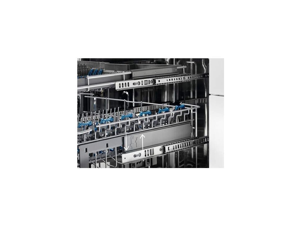 Výškovo nastaviteľný horný košík, dokonca i plne naložený