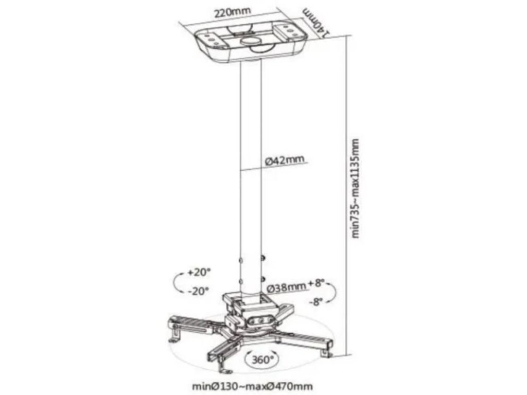 Vďaka vysokej nosnosti až 35 kg je tento držiak kompatibilný so širokou škálou projektorov, vrátane väčších a ťažších modelov. Univerzálne montážne ramená umožňujú pripevnenie projektorov so šírkou až 470 mm.