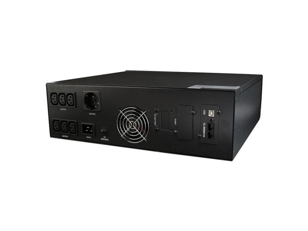 Typ UPS: interactive linka, čistá sínusová, Vstup: 220 V AC 25%, 50Hz / 60Hz 10%, Výstup: 220V AC 10%, 50Hz / 60Hz 0,5% (na batériu), Výstupný účinnok: 0,8, spínacia doba: nie viac ako 10 ms (typicky 6 ms), Doba zálohovania: 8 ... 20 minút (v závislosti od zaťaženia), Batéria: 151 x 65 x 95 mm, olovená zatavená 12 V / 9 Ah / 2,3 kg x 3 ks, Doba nabíjania: až 12 hodín, Zásuvky: vstup IEC C14, výstupy: Schuko EÚ typ x 1 ks, IEC C13 x 6 ks, Hluk: <45 dB (1 meter vzdialenosti), výkon: 2000 VA (1200 W), Rozmery: 440 x 410 x 132 mm, Hmotnosť výrobku: 19,8 kg, Funkcia "studený štart