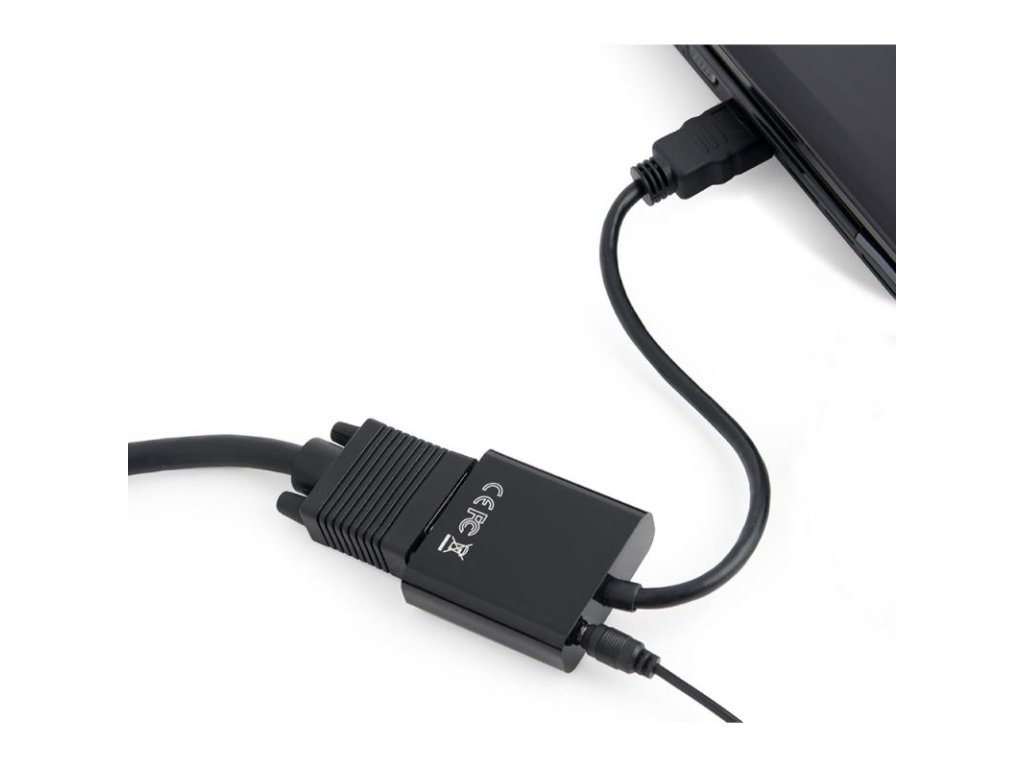 Výstup: 1x VGA DB15 samica (bez matíc), VESA až po WUXGA, 1920 x 1080 @ 60 Hz, 1x 3,5 mm stereo audio jack