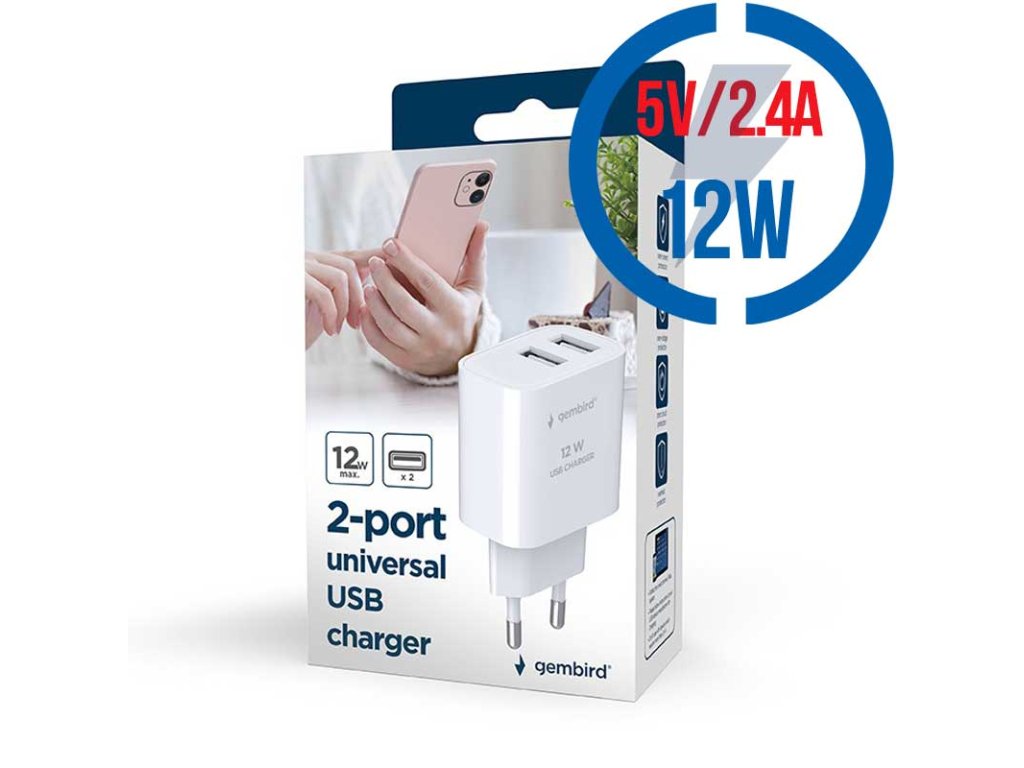 GEMBIRD TA-UC-2A12-01, Nabíjačka, 2x USB-A, 12W, b