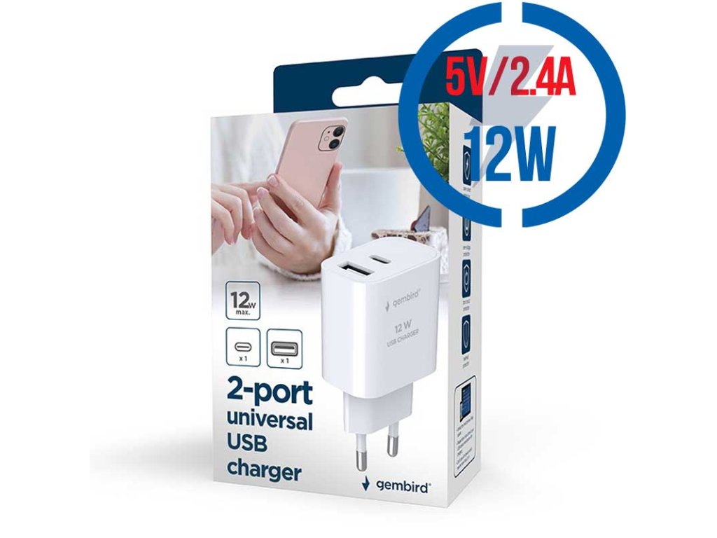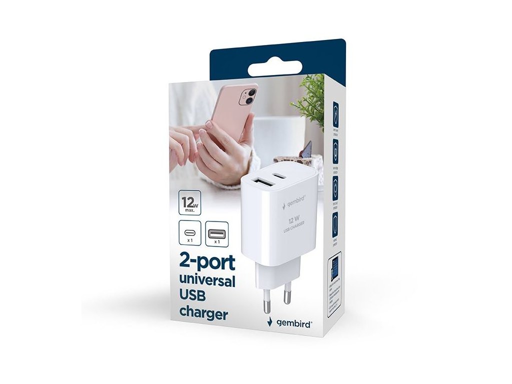 GEMBIRD TA-UC-2AC12-01, Nabíjačka, USB/USB-C, 12W