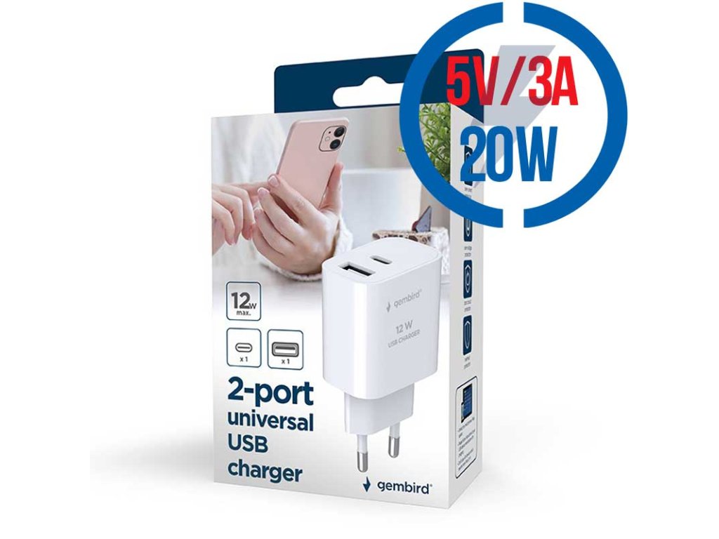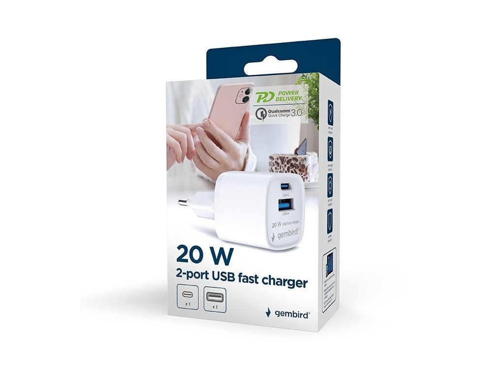 GEMBIRD TA-UC-PDQC20-W-01, Nabíjačka, USB/USB-C