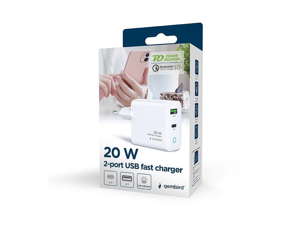 GEMBIRD TA-UC-PDQC20L-W-01, Nabíjačka, USB/USB-C