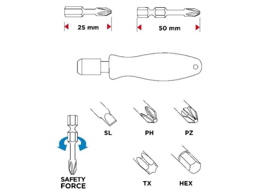 GRAPHITE 56H602, Sada bitov + skrutk, 25 mm, 31 ks