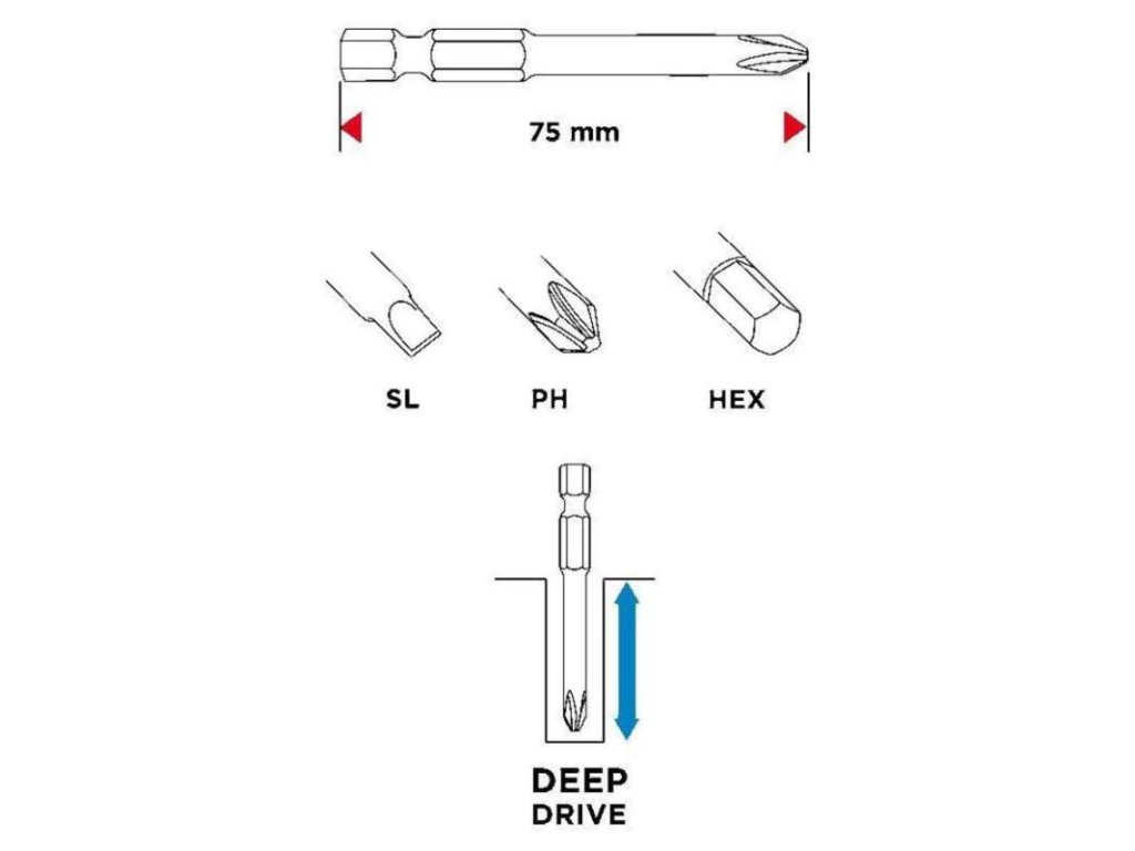 GRAPHITE 56H606, Sada bitov, 75 mm, 18 ks