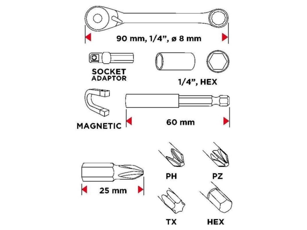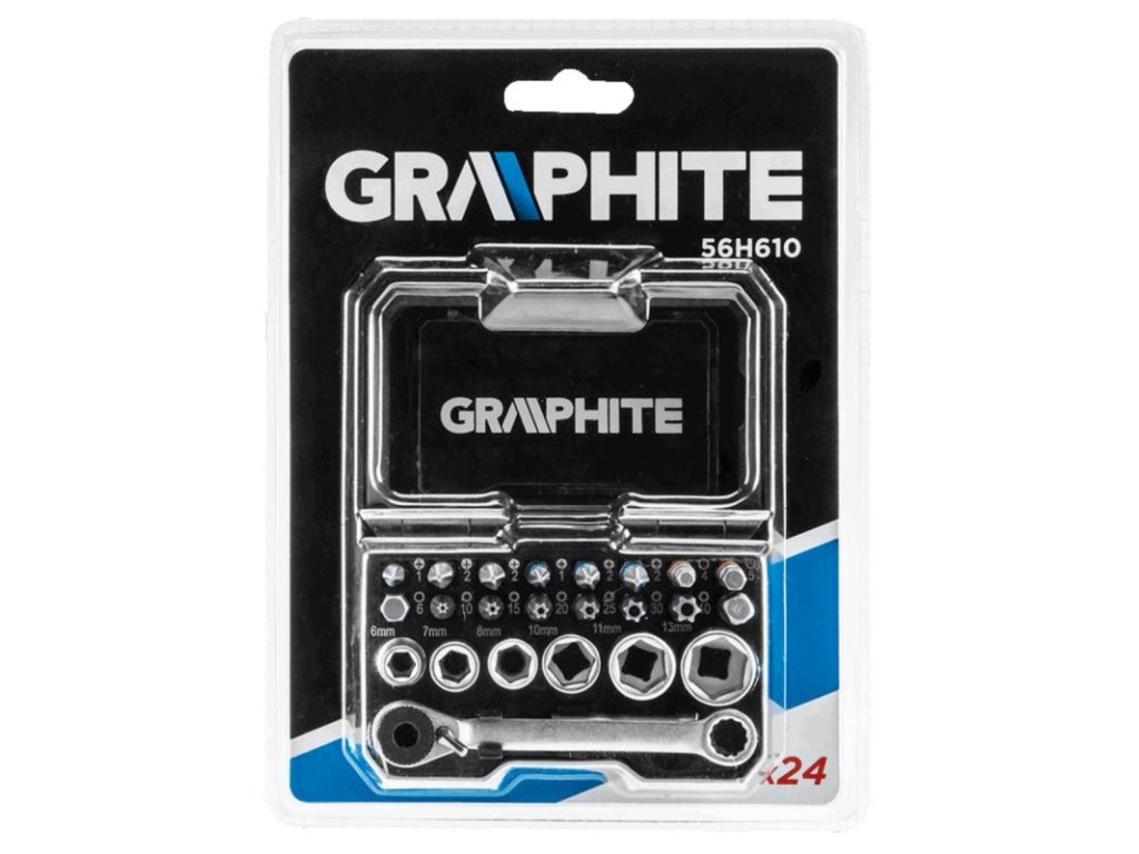 GRAPHITE 56H610, Sada bitov + račňa, 25 mm, 24 ks