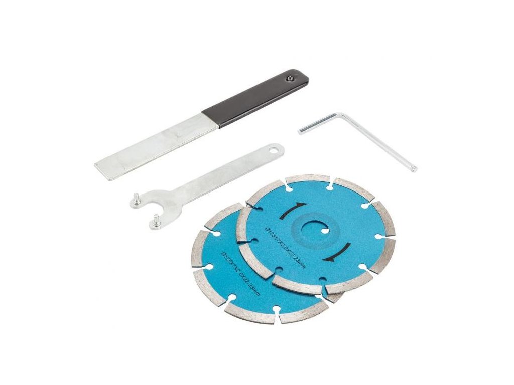 Nástroj je tiež vybavený blokádou vretena, ktorý umožňuje jednoduchú výmenu kotúčov.