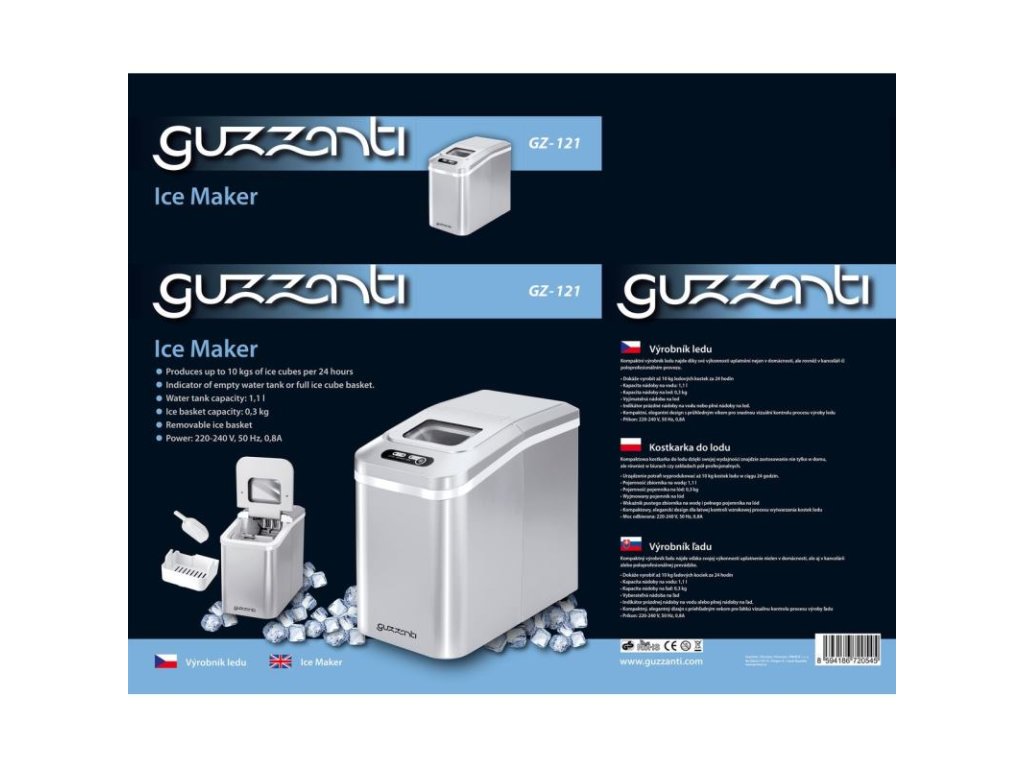 Výrobník ľadu Guzzanti GZ 121 je skvelý spoločník, ktorý pre vás, bez odvrávania, vyrobí až 10 kilogramov ľadových kociek počas 24 hodín. To je pomerne veľké množstvo aj pre veľkých milovníkov ľadovej drte.
