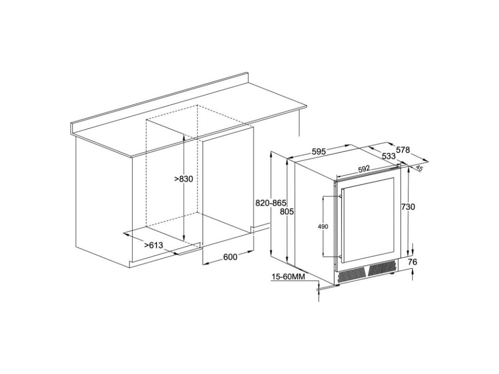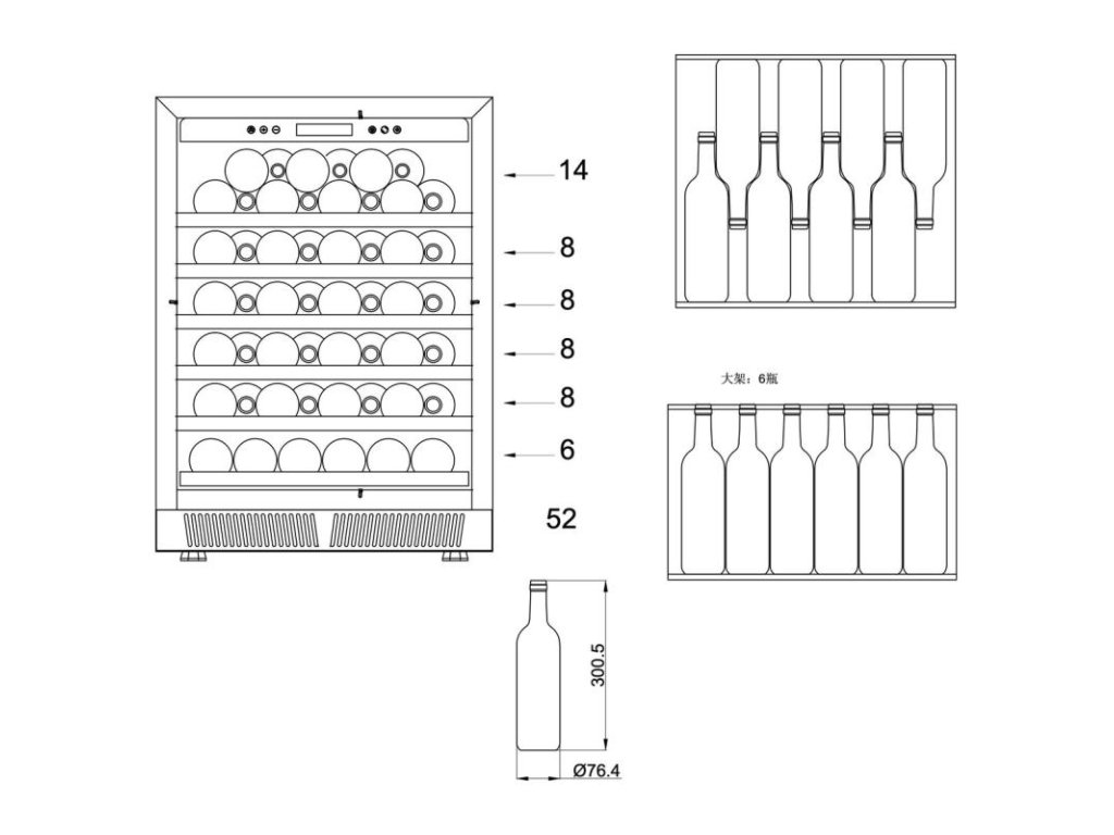 - Možnosť uskladnenia až 52 fliaš vína (145 l)