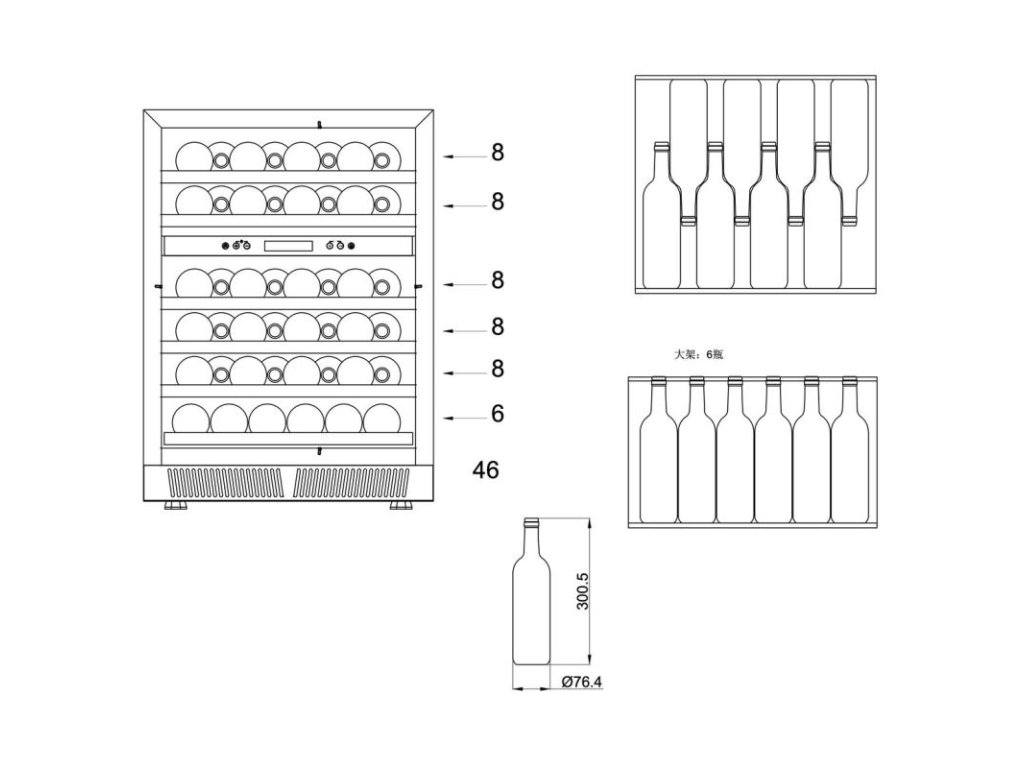 - Možnosť uskladnenia až 46 fliaš vína (145 l)