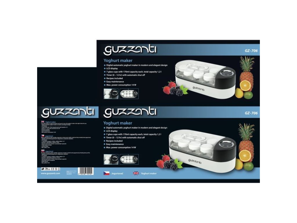 Jogurtovač Guzzanti GZ-706 je spoľahlivý a ľahko ovládateľný prístroj, ktorý vám prinesie radosť z prípravy vlastných jogurtov. Vďaka moderému dizajnu a praktickým funkciám sa stane nepostrádateľným pomocníkom vo vašej kuchyni.