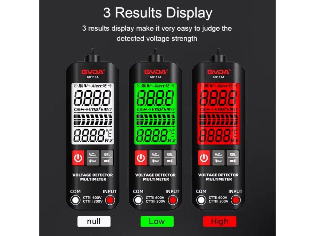 Tento produkt je multifunkčný merací prístroj, ktorý kombinuje detektor napätia a digitálny multimeter v jednom zariadení. Model GD113A ponúka automatické rozpoznávanie typu meranej veličiny a duálny režim detekcie napätia.