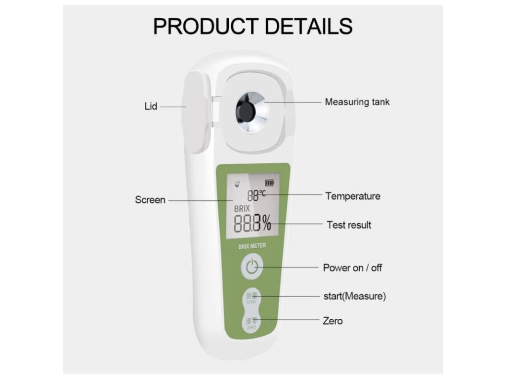 Ide o presný digitálny merací prístroj určený na meranie obsahu cukru v tekutinách (sacharometer), ktorý funguje na princípe refraktometrie.