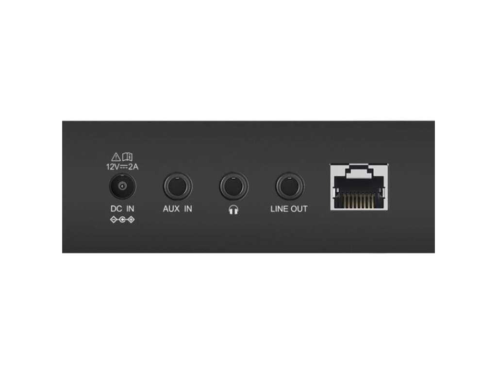 Pripojenie: slúchadlá (3,5 mm), Aux In (3,5 mm jack), Line Out (3,5 mm jack)