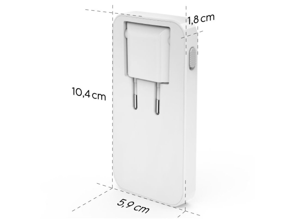 Dokonale prenosná: Vďaka ultraplochému telu (len 1,8 cm) a sklopnej euro vidlici sa ľahko zmestí do vrecka nohavíc, priečinka na notebook alebo malej kabelky. Ideálny spoločník na cesty.