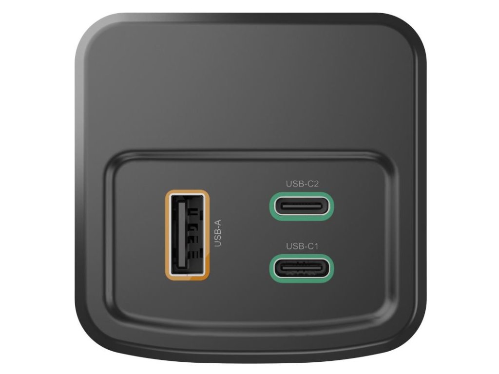 Súčasné nabíjanie 3 zariadení: Efektívne využite čas vďaka dvom USB-C zásuvkám a jednej USB-A zásuvke.