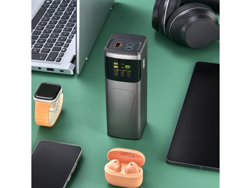 Získajte absolútnu energetickú nezávislosť s powerbankou Hama High Power 150 W. Tento univerzálny externý zdroj energie je navrhnutý tak, aby splnil požiadavky aj tých najnáročnejších používateľov a zariadení. S celkovým výkonom až 150 W a kapacitou 24 000 mAh spoľahlivo nabije všetko od smart hodiniek a slúchadiel až po výkonné pracovné a herné notebooky.
