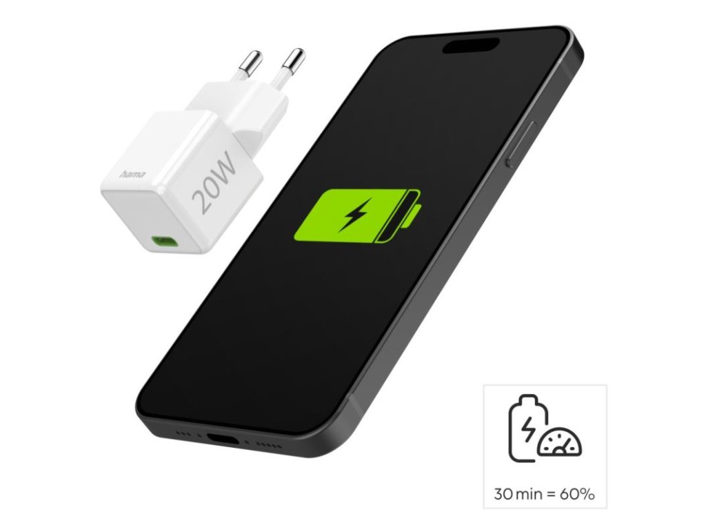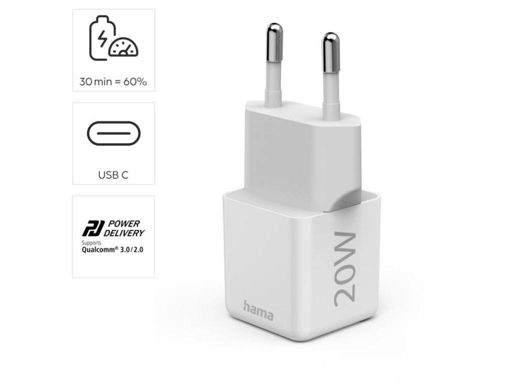 HAMA Super-mini, Rýchlonabíjačka, USB-C PD/QC 20W