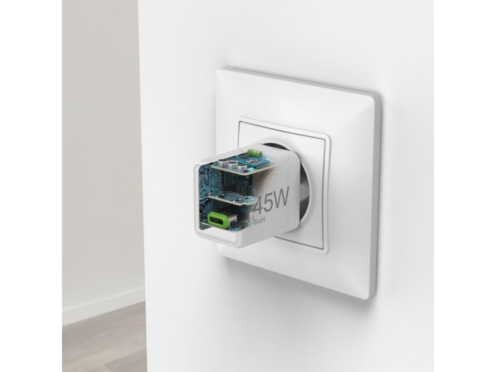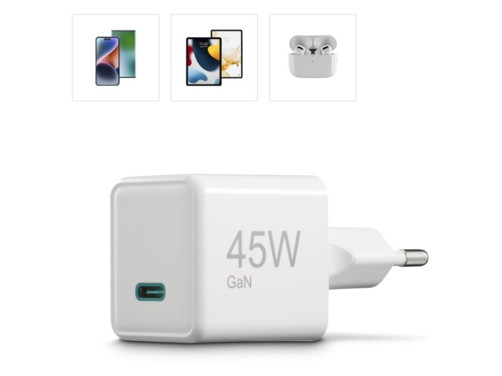 Maximálny výkon 45 W: Dostatočný výkon aj pre energeticky náročné zariadenia, vrátane notebookov ako MacBook Air a ďalších s príkonom do 45 W.
